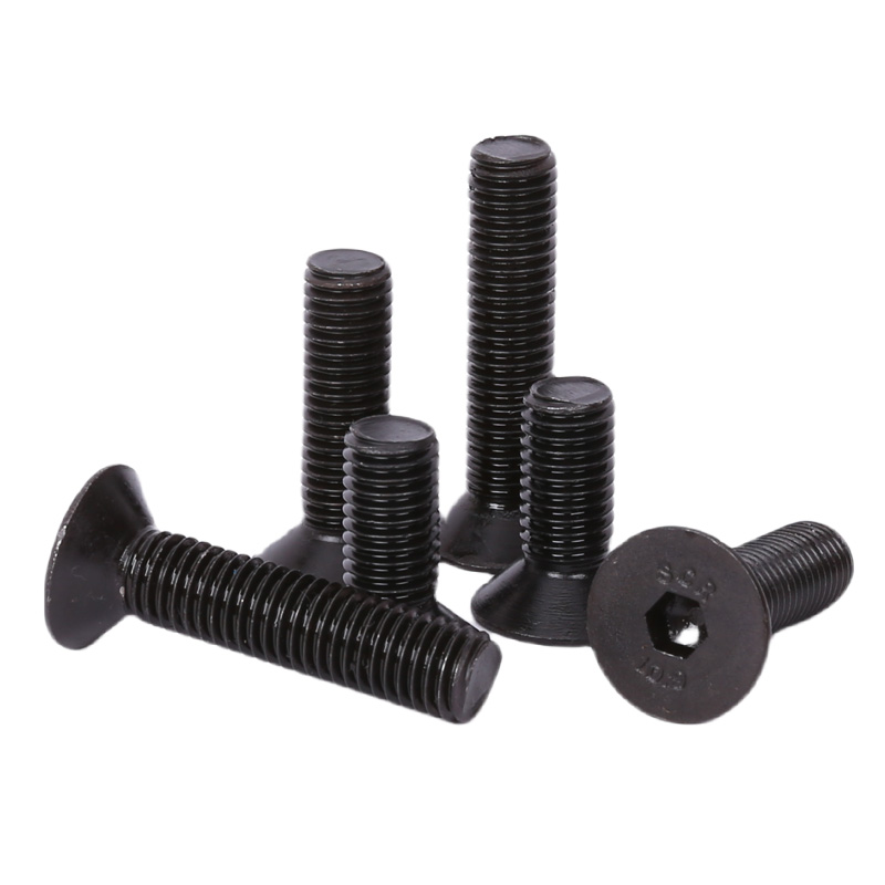 1.Premium Performance – Precision-machined from quenched-and-tempered alloy steel (10.9 or 12.9 grade), these flat head socket cap screws deliver exceptional tensile strength (≈ 150-180 ksi / 1000-1240 MPa) and core hardness (HRC 35-44). The 82° or 90° countersunk head design allows for a completely flush surface when properly installed, eliminating protrusions while maintaining maximum clamping force. Their black oxide or phosphate coating provides basic corrosion protection and reduces light reflection in optical-sensitive environments.